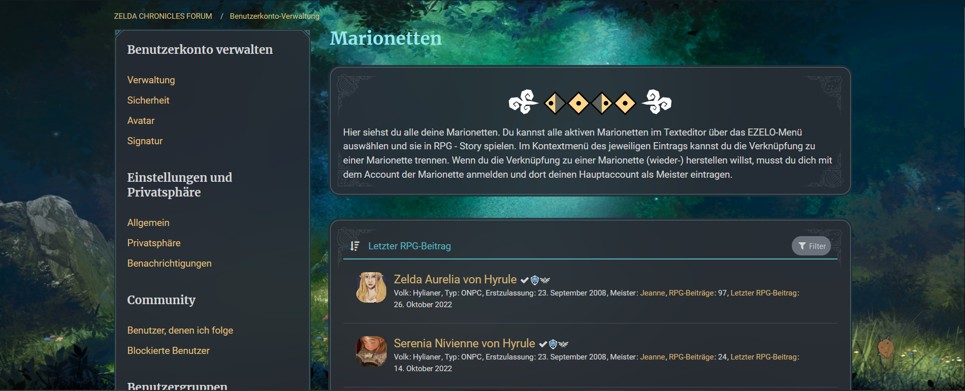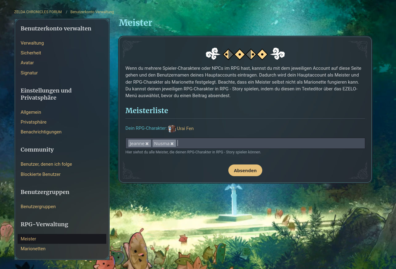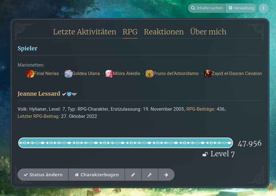 Im RPG-Profil werden jetzt alle Marionetten und der Meister der Charaktere angezeigt. Die separate Liste "Meine Charaktere" fällt damit weg.